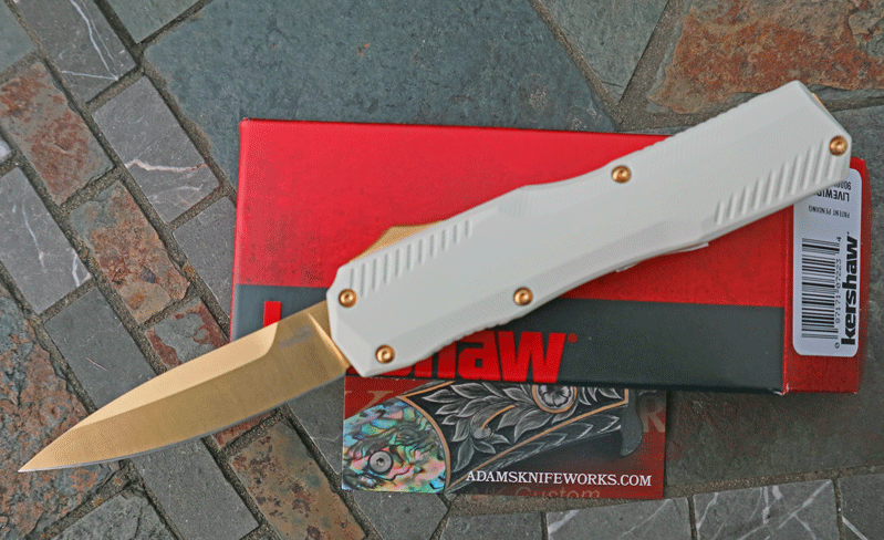 HOGUE Tan Handle A01 MICROSWITCH AUTO w/ Black Blade Model 24127