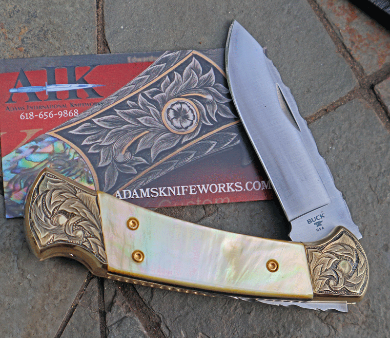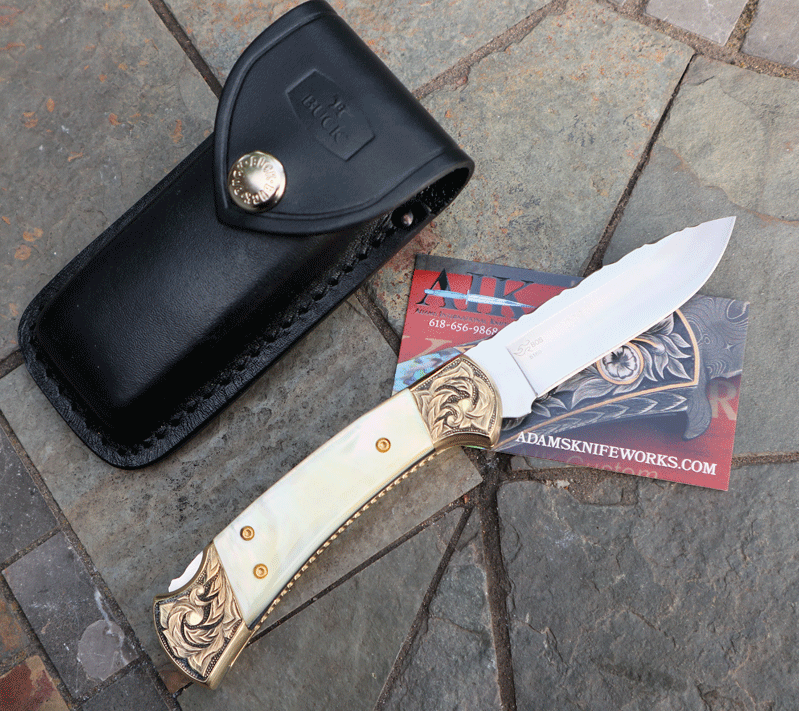 Hand Engraved & File Worked BUCK 112 Ranger w/Gold Lip Pearl