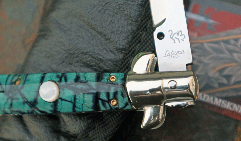 on the tang with the Latama "Cat" Logo.. Handcrafted by Frank Beltrame in Italy for Latama and Customized by