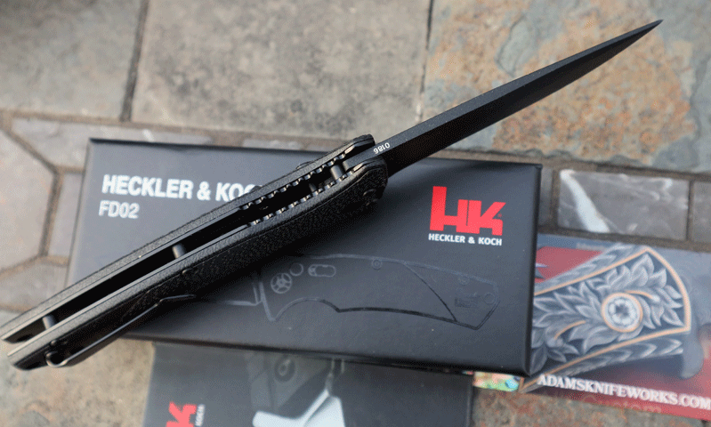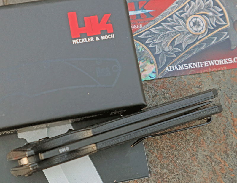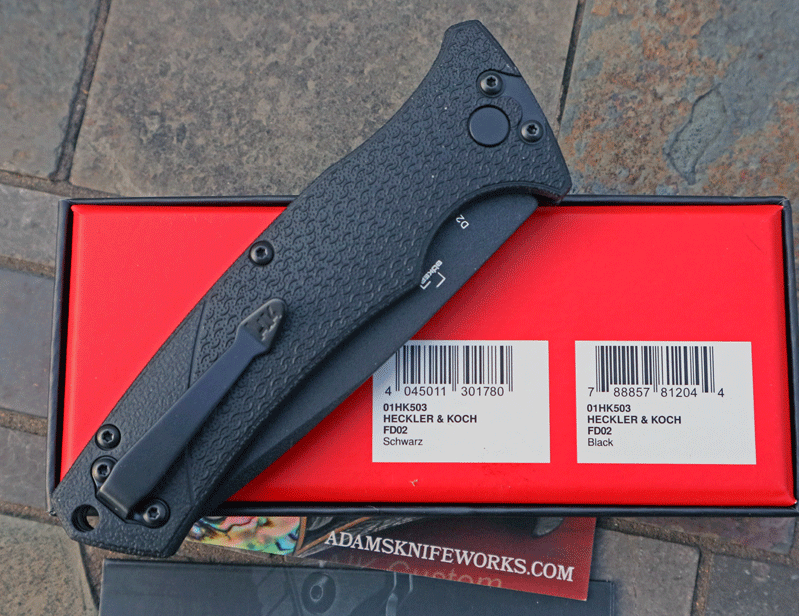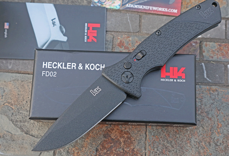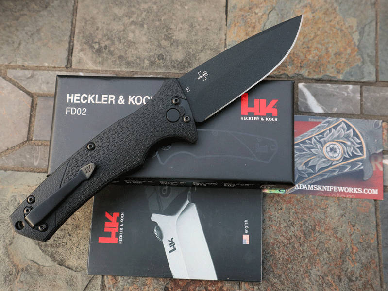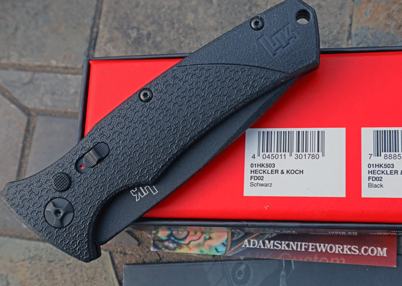 Manufactured for H&K by Boker Plus. Previous H&K models were made by Benchmade and most recently by Hogue.Features superb auto action with rock-solid lockup. Features a sliding "gun style" safety next to the push button.. Highly recommended..Great for everyday carry or daily duty carry! New in the box. Serialized on the spine of the blade.