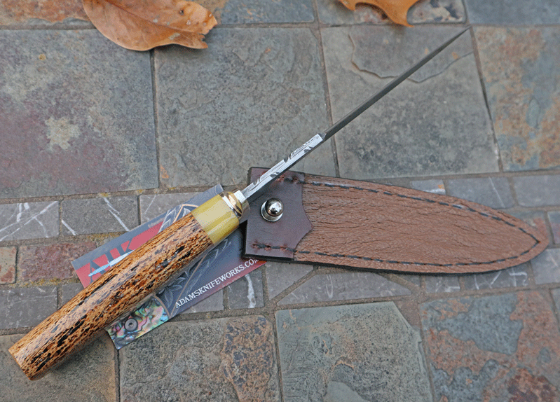 Bill Miller Handmade Damascus Fighter w/ Fossil Sea Cow Bone