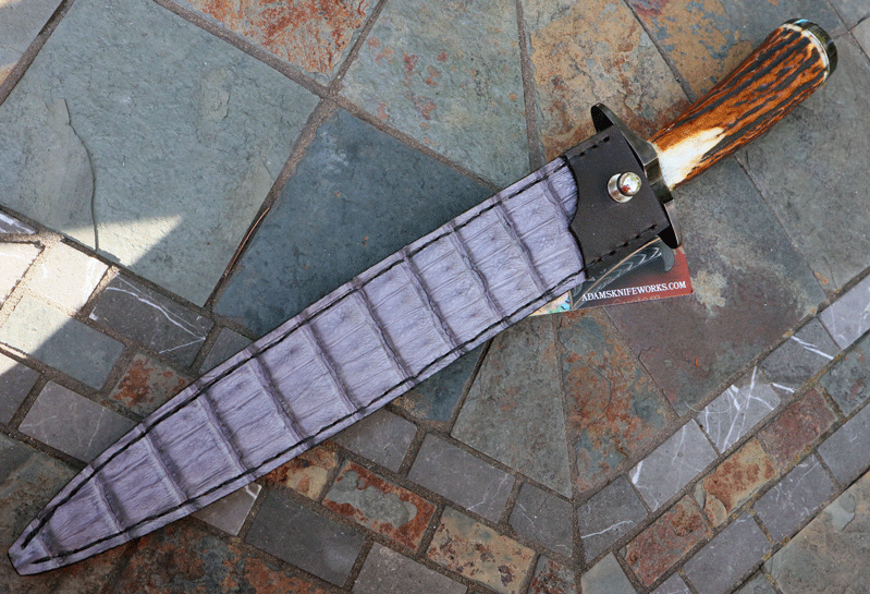 Antiqued (Polished Blued) Guard and Butt Cap. Caiman Skin/Leather Back