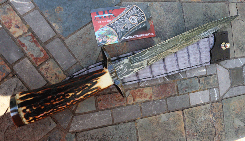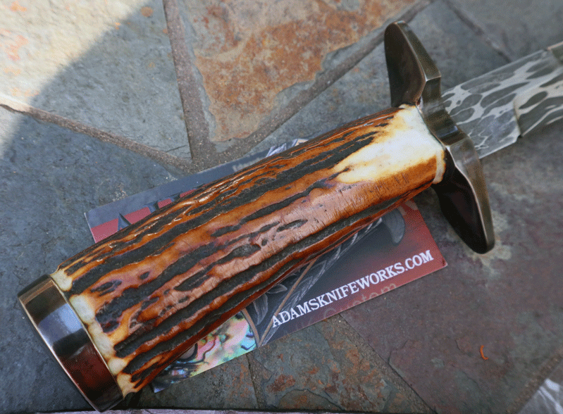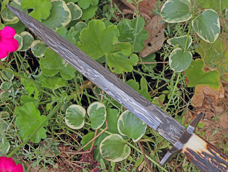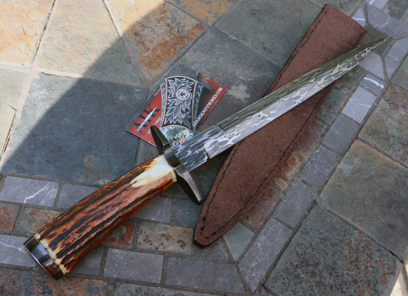 Bill Miller Handmade DAMASCUS Bayonet Dagger w/Amber Stag