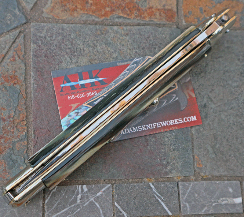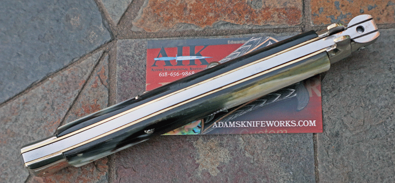Brass lined Nickel Silver bolsters. Features superb switchblade action. Excellent condition.