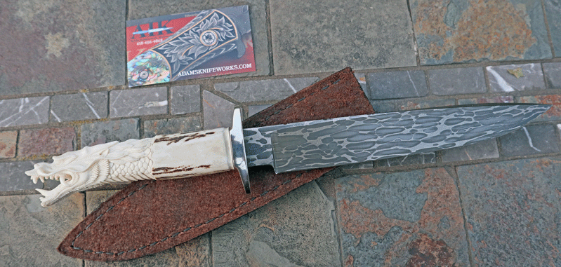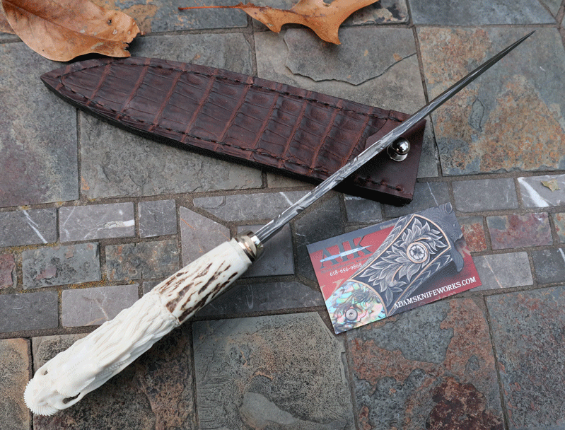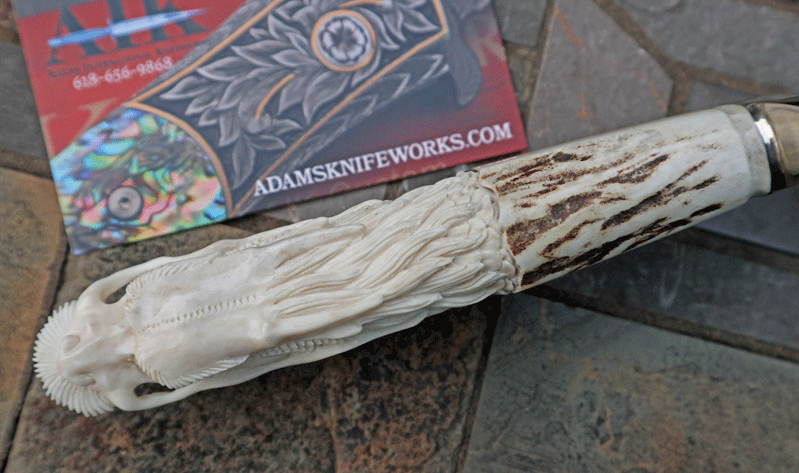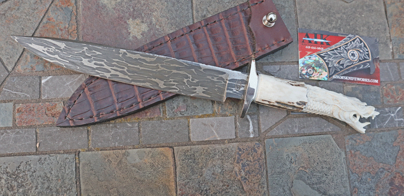 Bill Miller Hand Carved Stag Bowie Fighter with Damascus