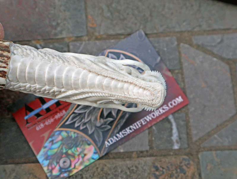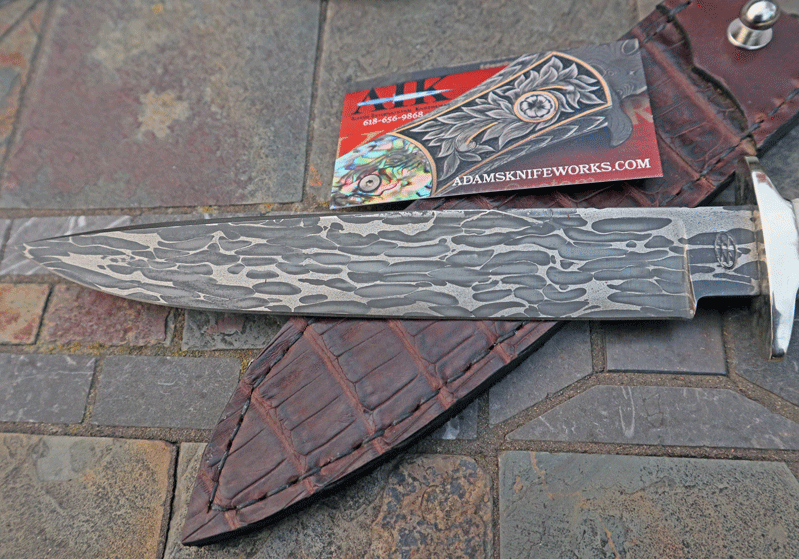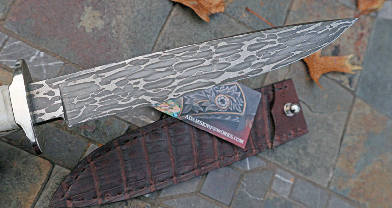 from 52100 Ball Bearings and 1085 Powder Steels. Measures 12 3/4" overall.