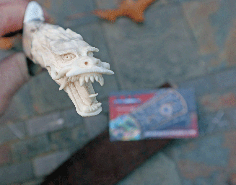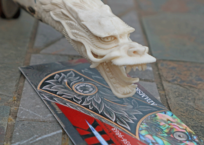 is hand done and features a Dragon Head. Superb detail and craftsmanship shows the Dragon's whiskers, teeth, and scales!. A stunning piece for the finest collection. Beautiful yet functional work of art! One of the finest from Bill Miller!