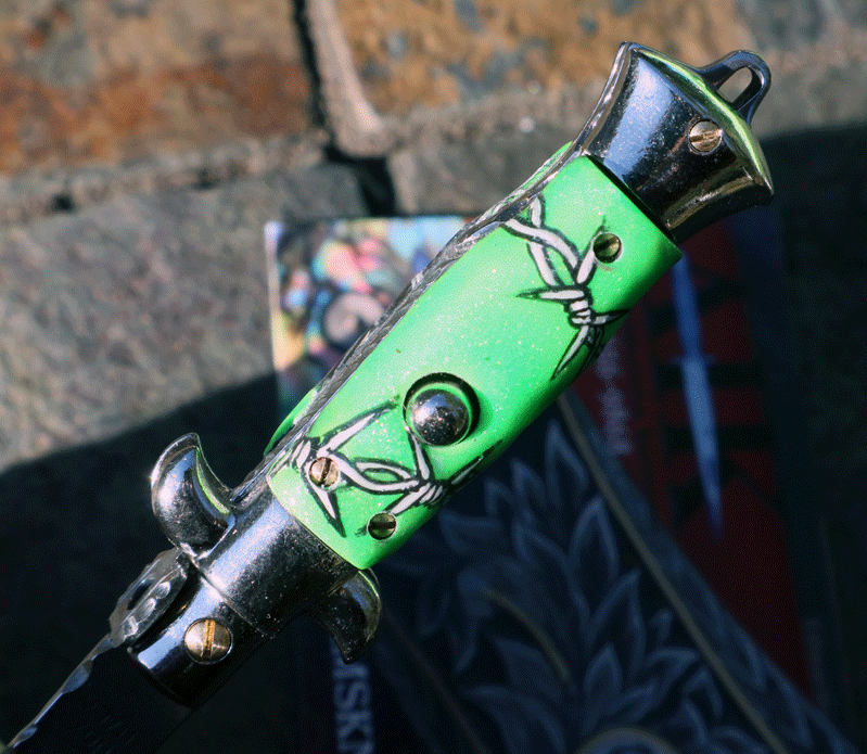 Hand Painted CYCLOPS AIK 4" Mini Switchblade w/ File Work
