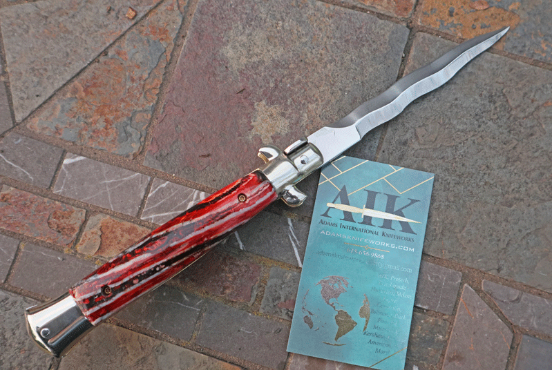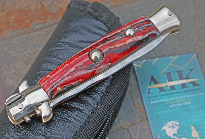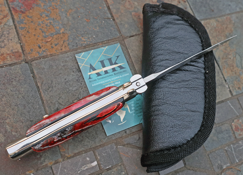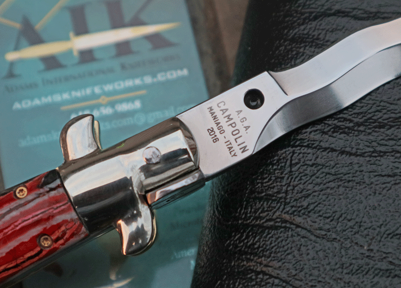 Blade is marked on the tang "A.G.A. CAMPOLIN 2016". Picklock design; means you must take your index finger and thumb and pull back where the blade locks to unlock it, (most modern classics have a swivel bolster release design).(Older Model classics featured the Picklock design closure).This is one of the finest quality Italian Classics constructed.