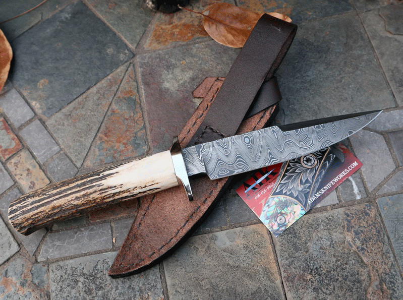 Bill Miller DAMASCUS Skinner/Hunter w/ Sambar Stag
