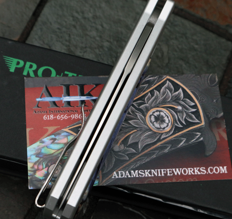 Pocket Clip on the backside.(Tip Up Carry). Measures 7 5/8" overall open.