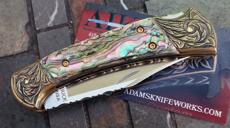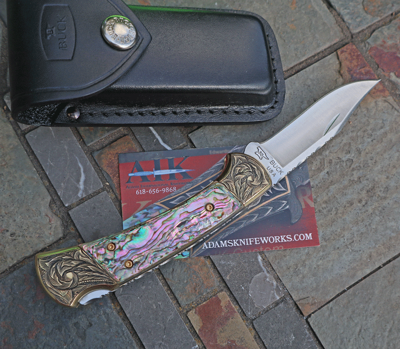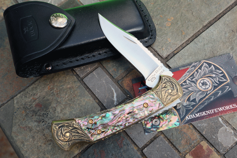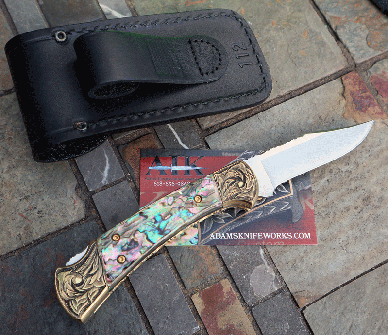 Hand Engraved & File Worked BUCK Ranger 112 w/ Abalone