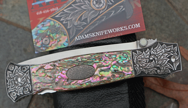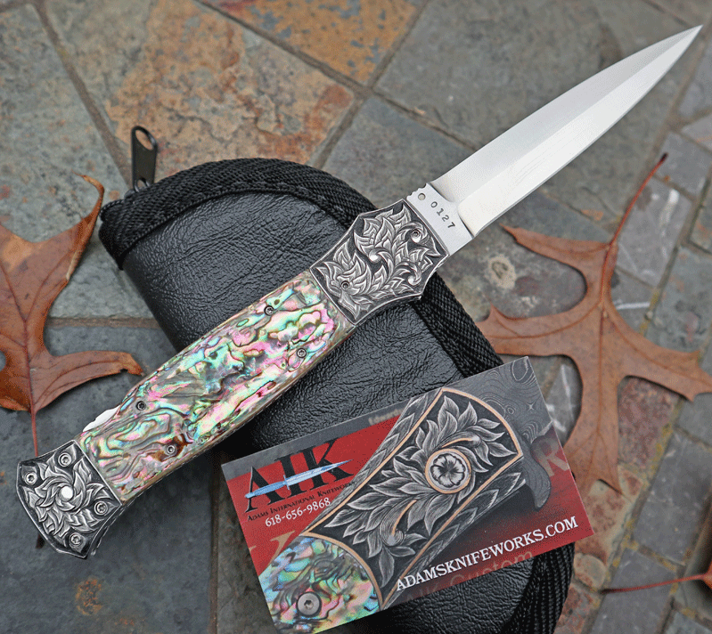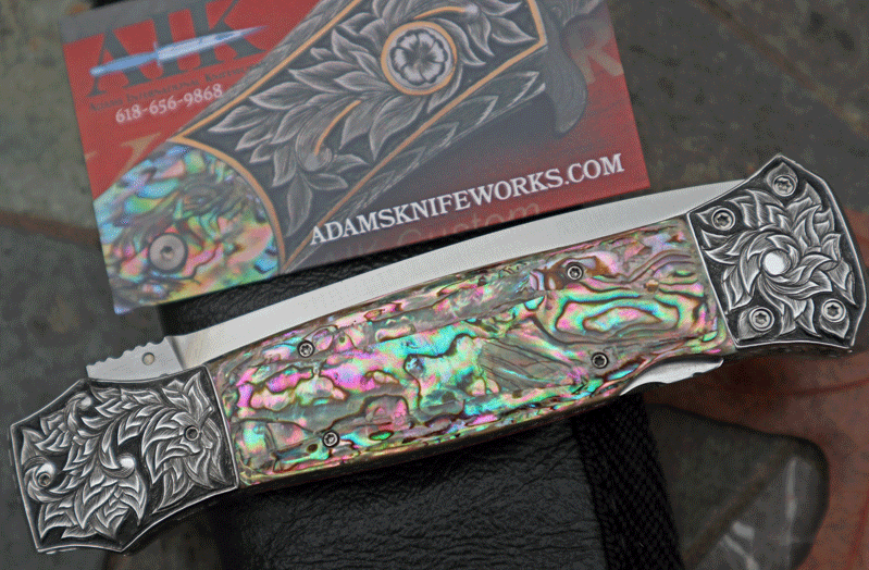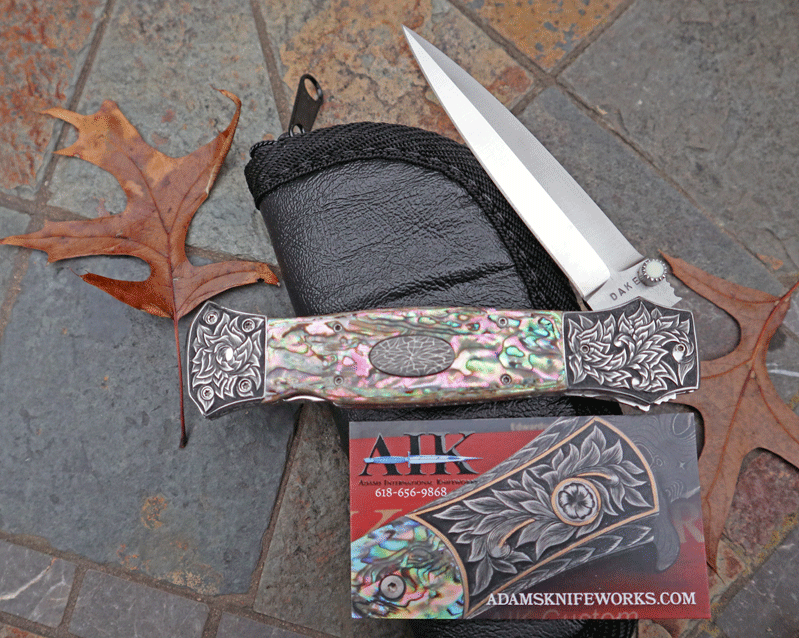 Dake/Adams Handmade Engraved Double Action Auto w/Mosaic Abalone