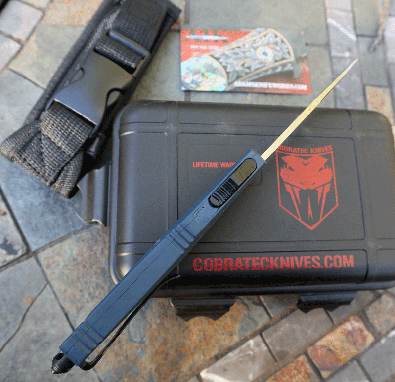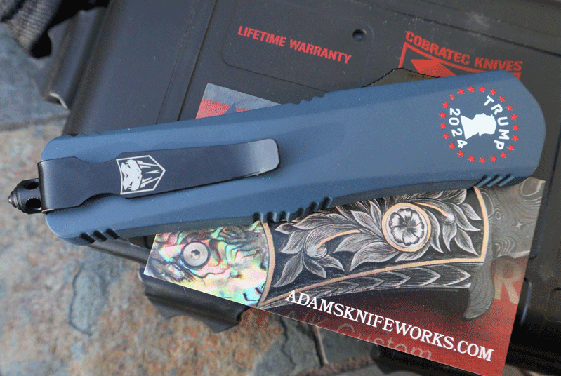 Special Blue Cobratec TRUMP Front Opening Auto w/ D2 Tanto Blade