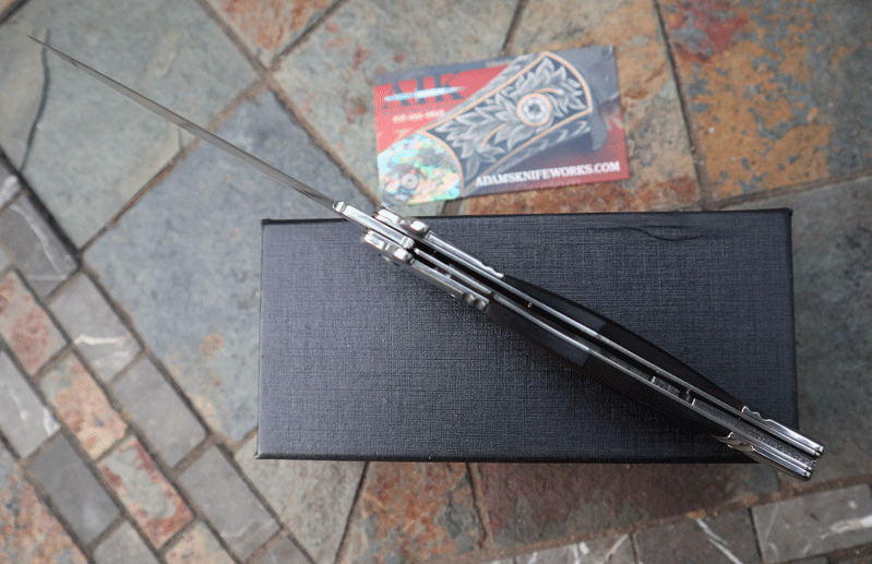 on both sides. Features a leather belt sheath. Don't be fooled by the low price. This is a nice switchblade for the price! Lockup is rock-solid.