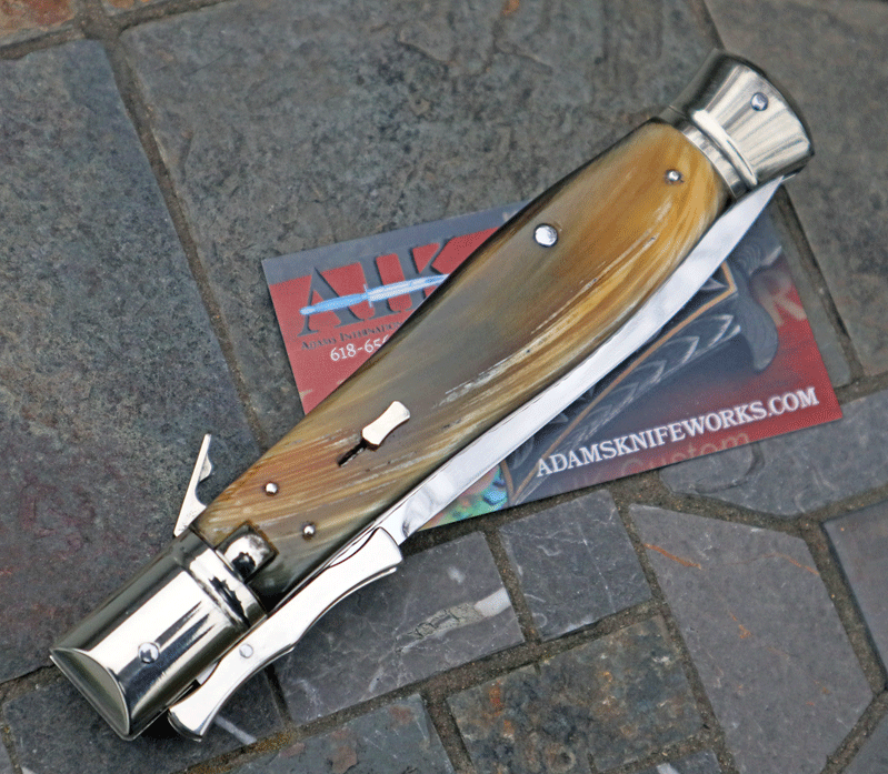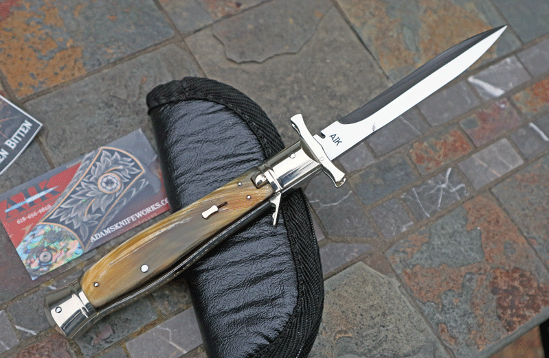 . Blade is perfectly centered. Tightest lockup of any Italian-style switchblade on the market. Superb Quality Piece.